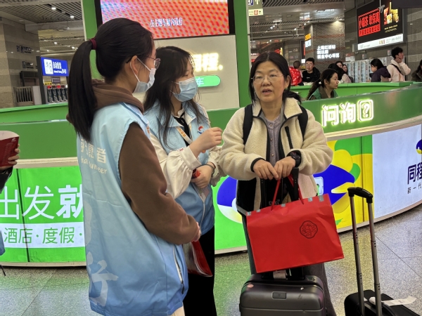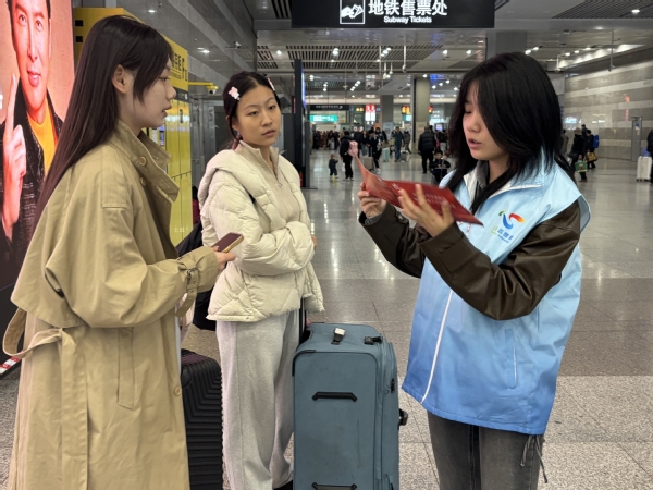 当天,东海学院的志愿者们身着整齐统一的服装,活跃在高铁站、地铁站、长途客运站等关键区域,开展全方位、全流程的志愿服务。他们化身“贴心向导”,凭借对枢纽布局的熟悉,为旅客提供精准细致的路线指引,帮助旅客快速找到目的地,节省出行时间;他们坚守“爱心专岗”,主动为老弱病残孕等重点旅客提供帮助,协助他们搬运行李、引导乘车,让特殊旅客感受到无微不至的关怀;他们组成“秩序维护小队”,在人流密集的区域来回巡查,及时疏导人群,维持现场秩序,确保旅客出行安全有序,用青春的身影构筑起枢纽安全运行的“温暖防线”。